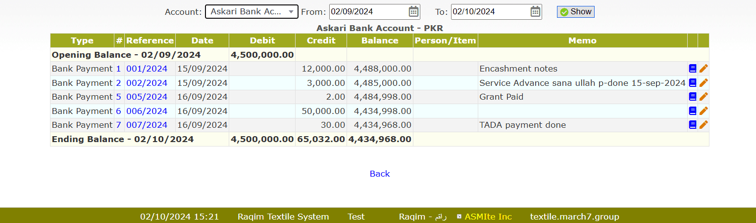 • Set dates range of Bank Account inquire