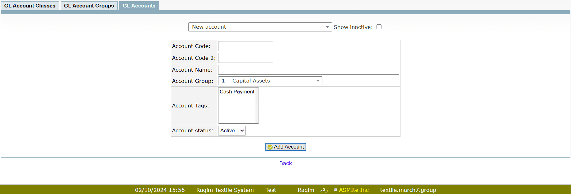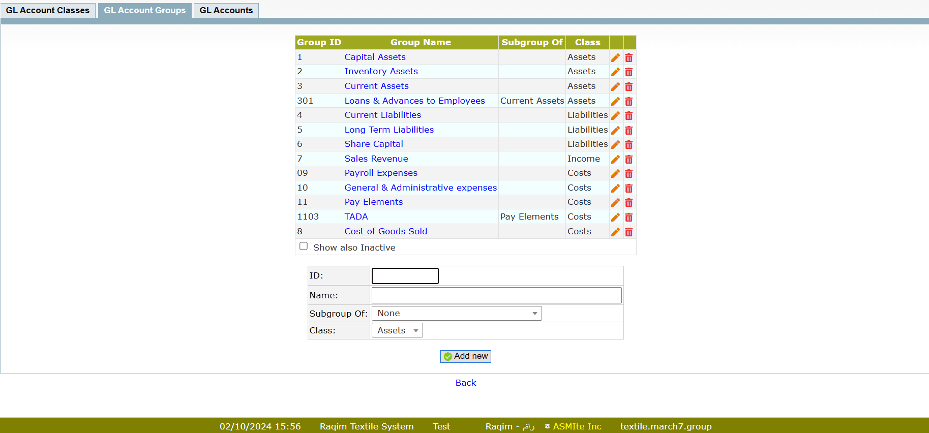 - Set Account Groups by entering Group ID, Group Name, subgroup (if any) and selecting the Class type