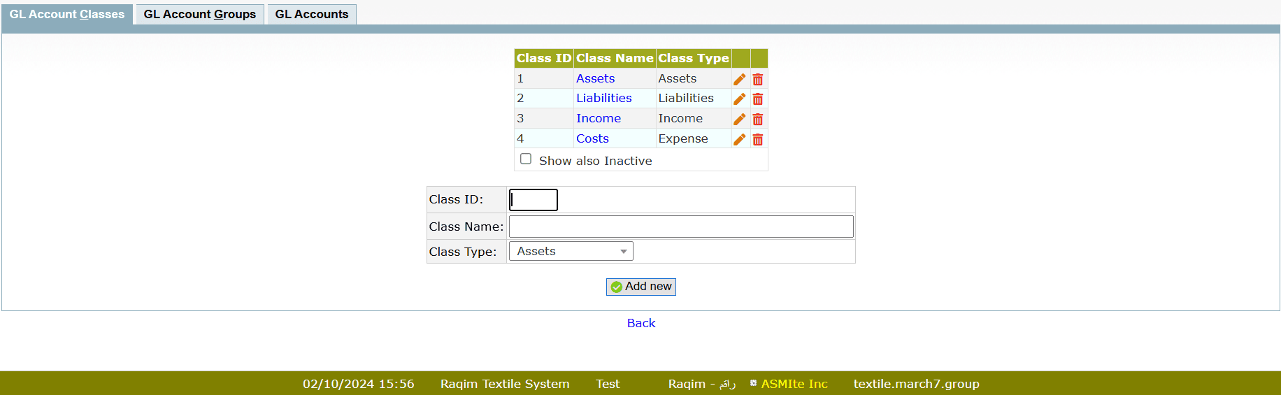 - You will need to do this before you set any Account Group. Add an ID that does not already exist, enter a name and select a Class Type. Click on Add New
