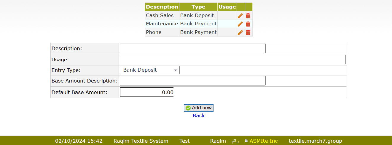 • If you press the Edit link on a Quick Entry you get a new form below where you can edit the sequence of operations performed on base amount (Quick Entry Lines).