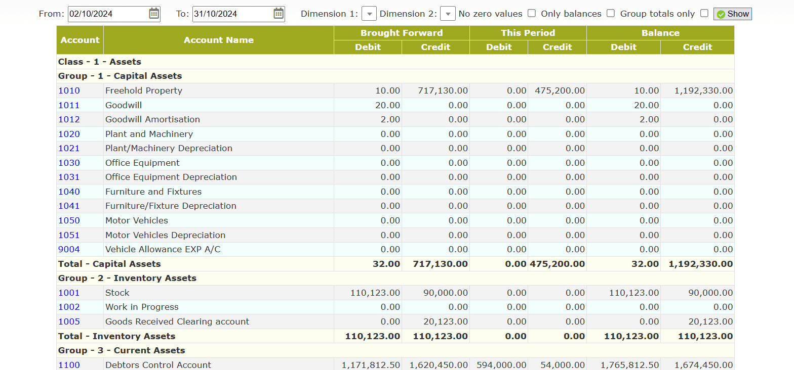 - You can also Filter the values through No zero values, Only Balances and Group Totals only checkboxes