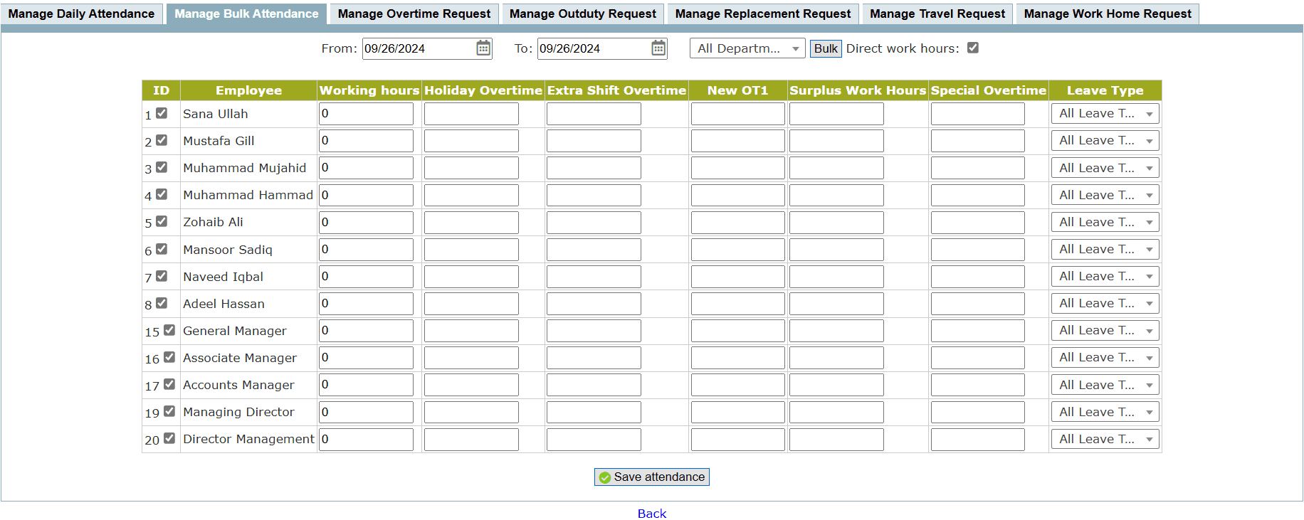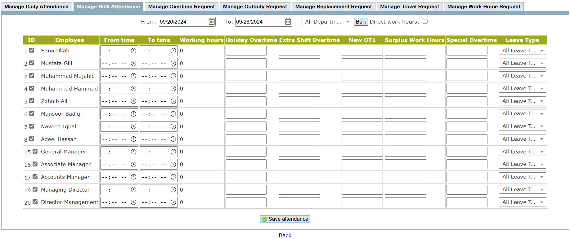 • Manage Bulk Attendance