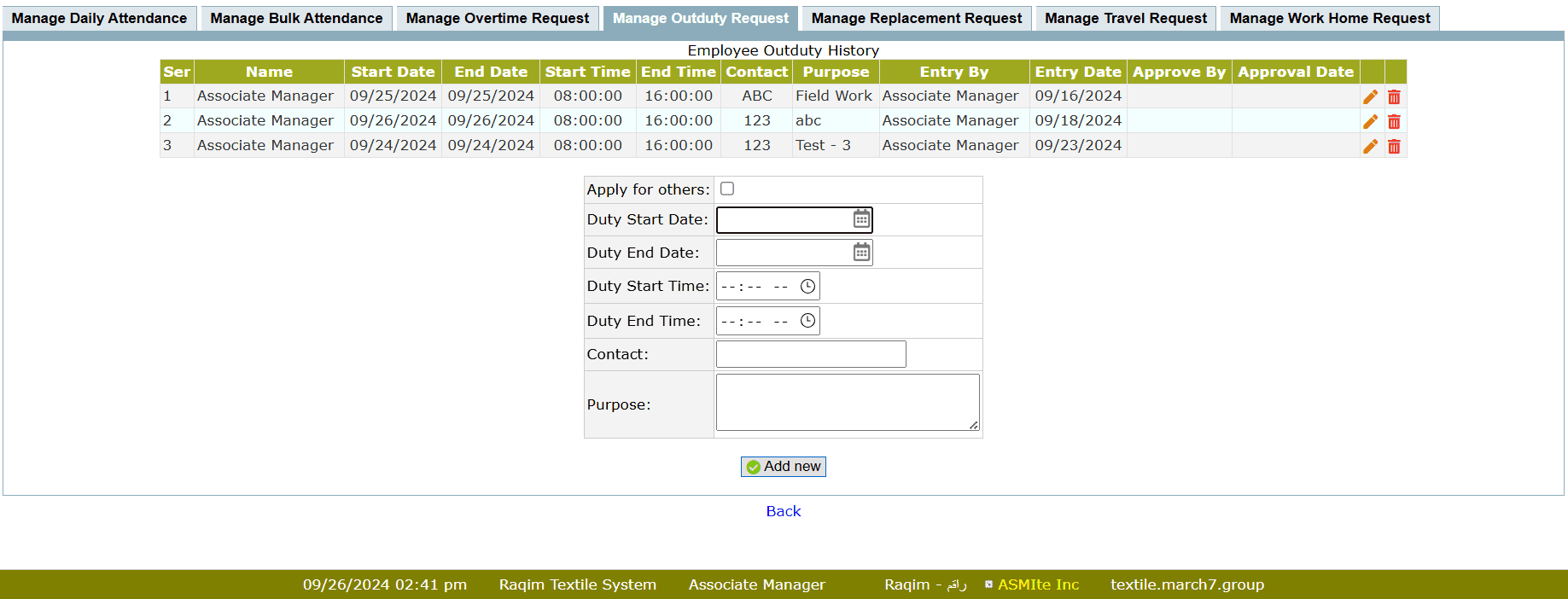 • Manage Outduty Request