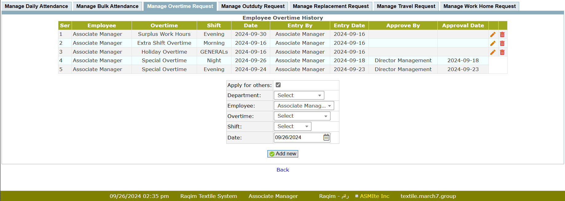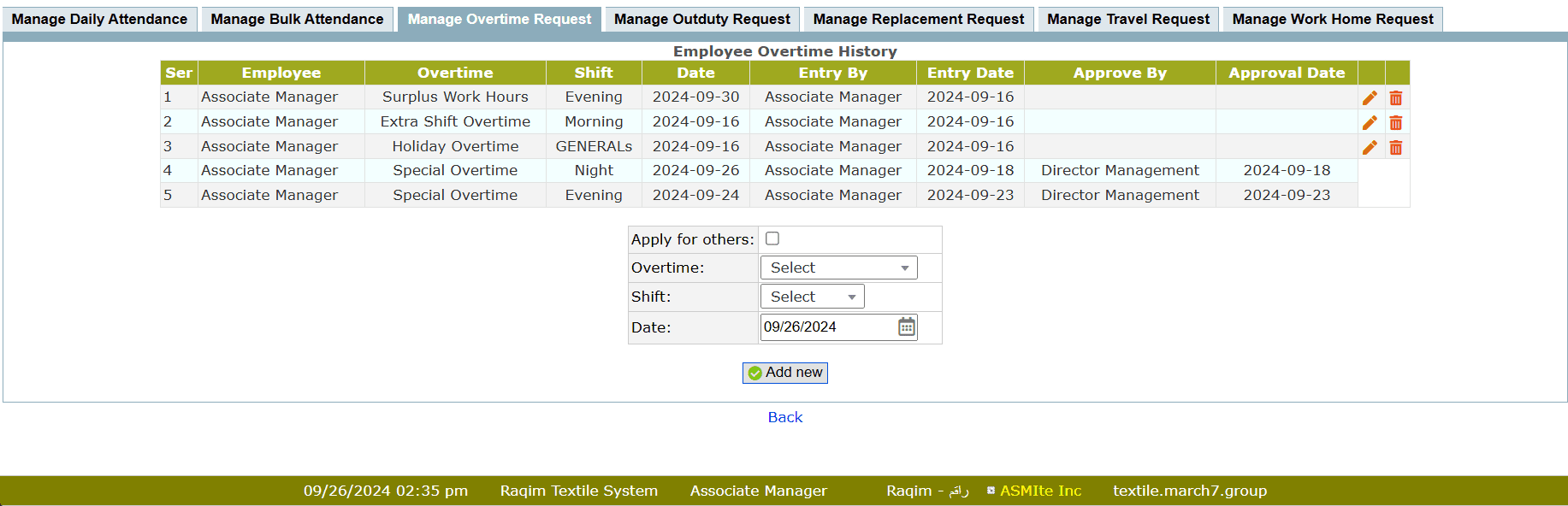 • Manage Overtime Request
