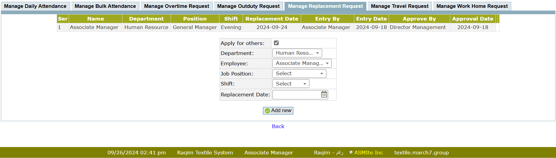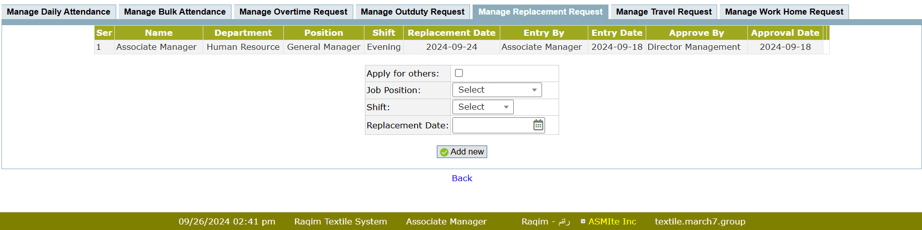 • After submission of replacement request, the request require final replacement approval through Attendance Inquiry