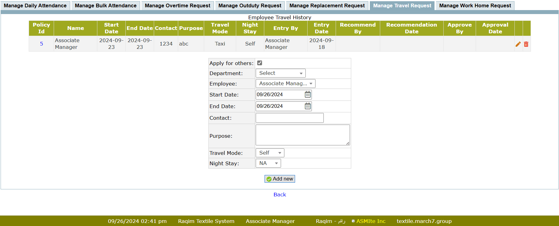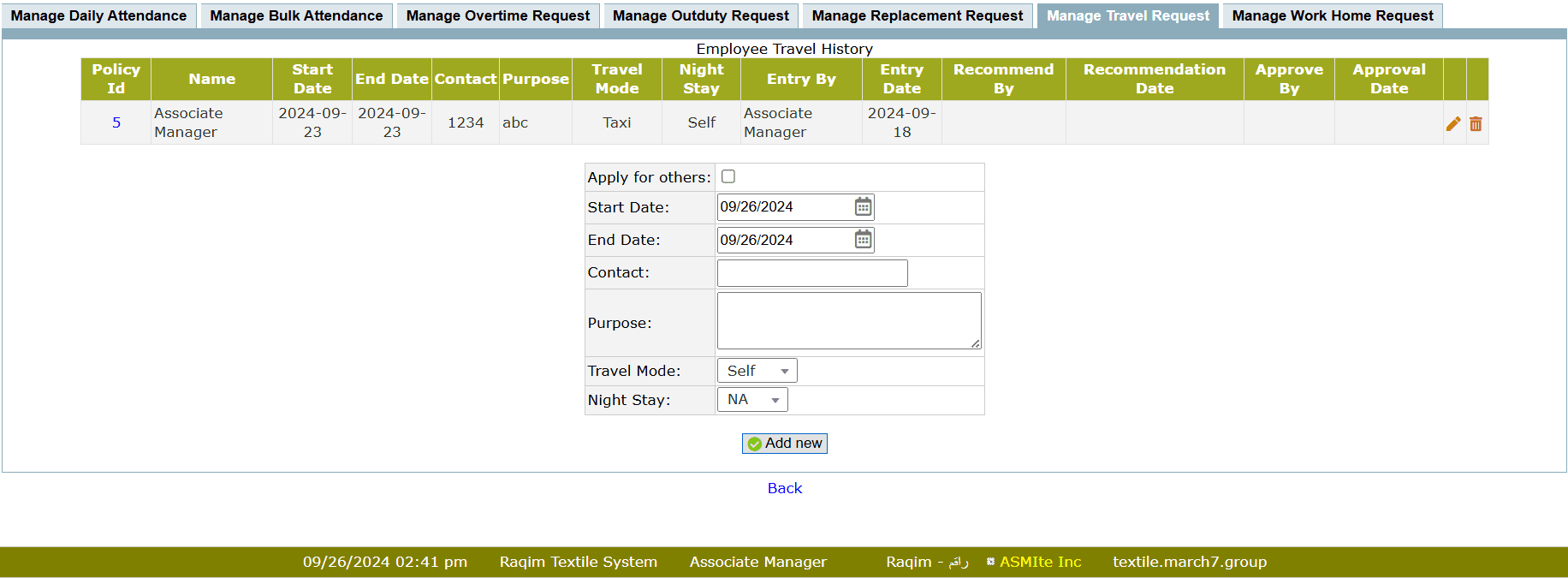Manage Travel Request