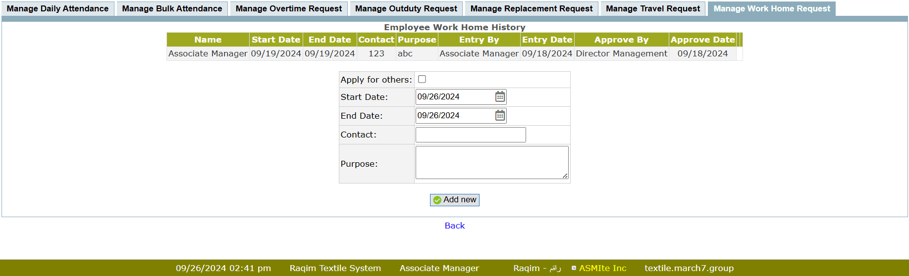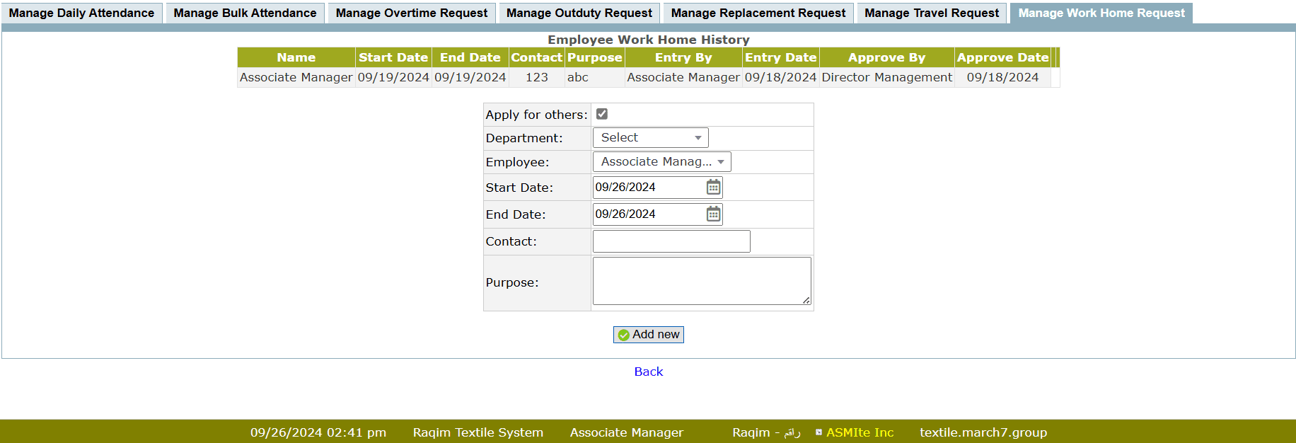 • To apply work home request