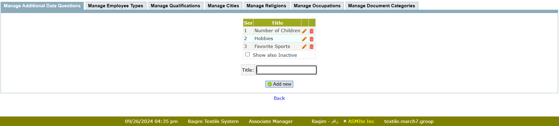 - Additional Questions are used in Employee setup for the Questions which are not in standard layout