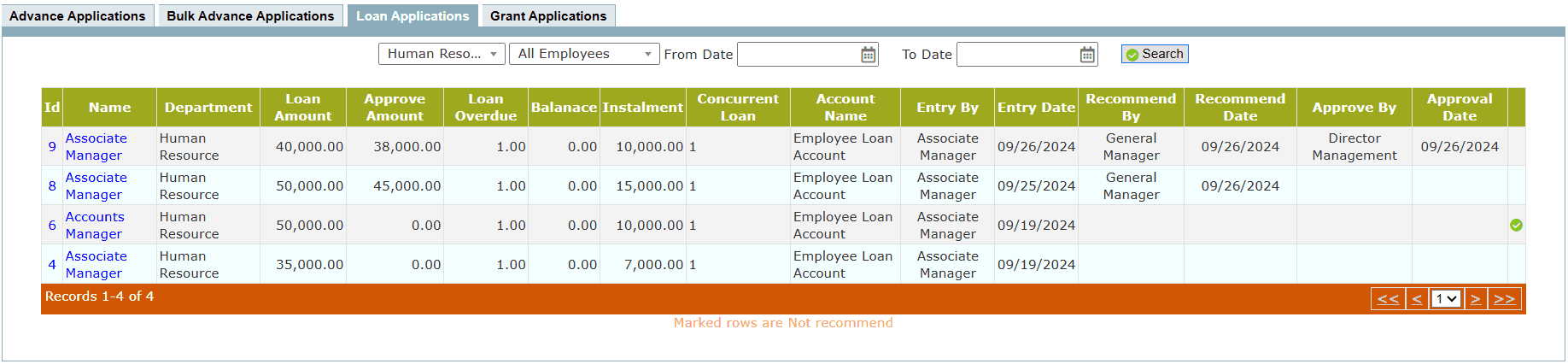 To inquire and manage Loan and advance applicationsProcedure
