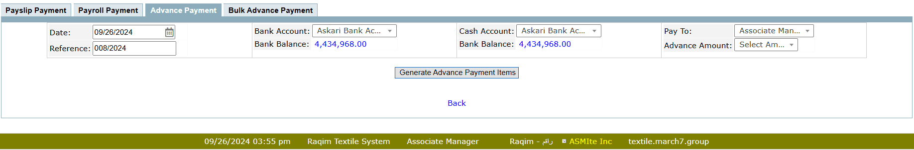 - Bulk Advance Payment