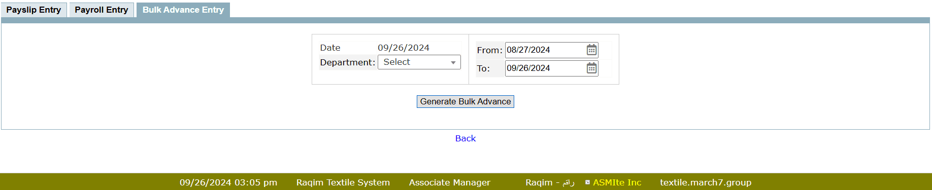 - Click on the Generate Bulk Advance button to generate Bulk Advance