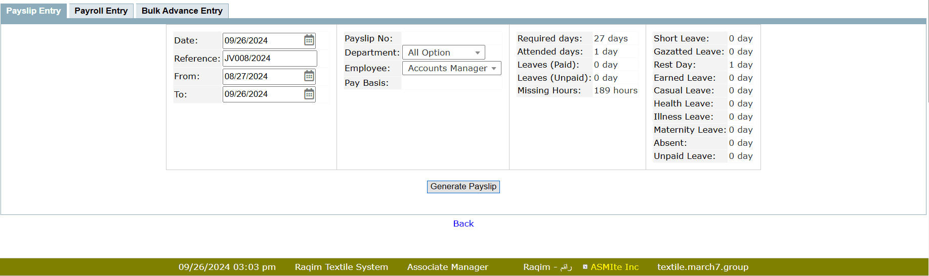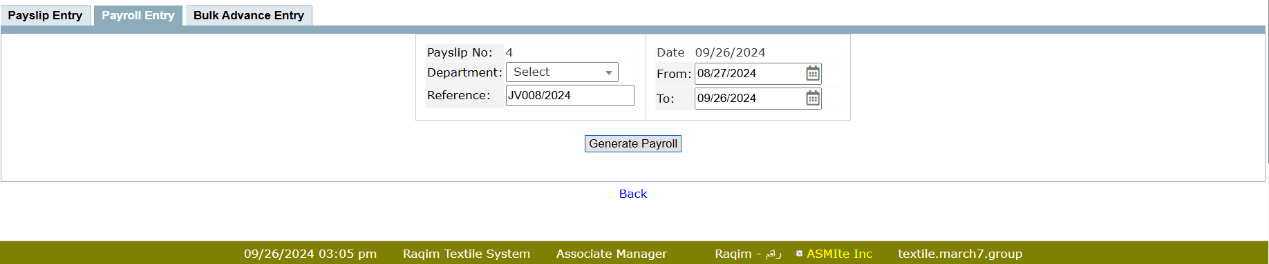 To process salary payments i.e. Payslip, Payroll and Bulk Advance Salary
