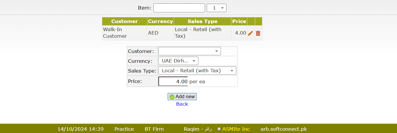 - Click on the Add new button to register the Sales Price