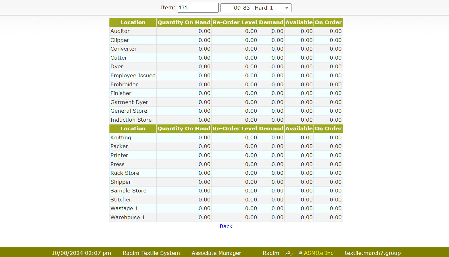 Shows QOH (Quantity on Hand) for items and other stock details.