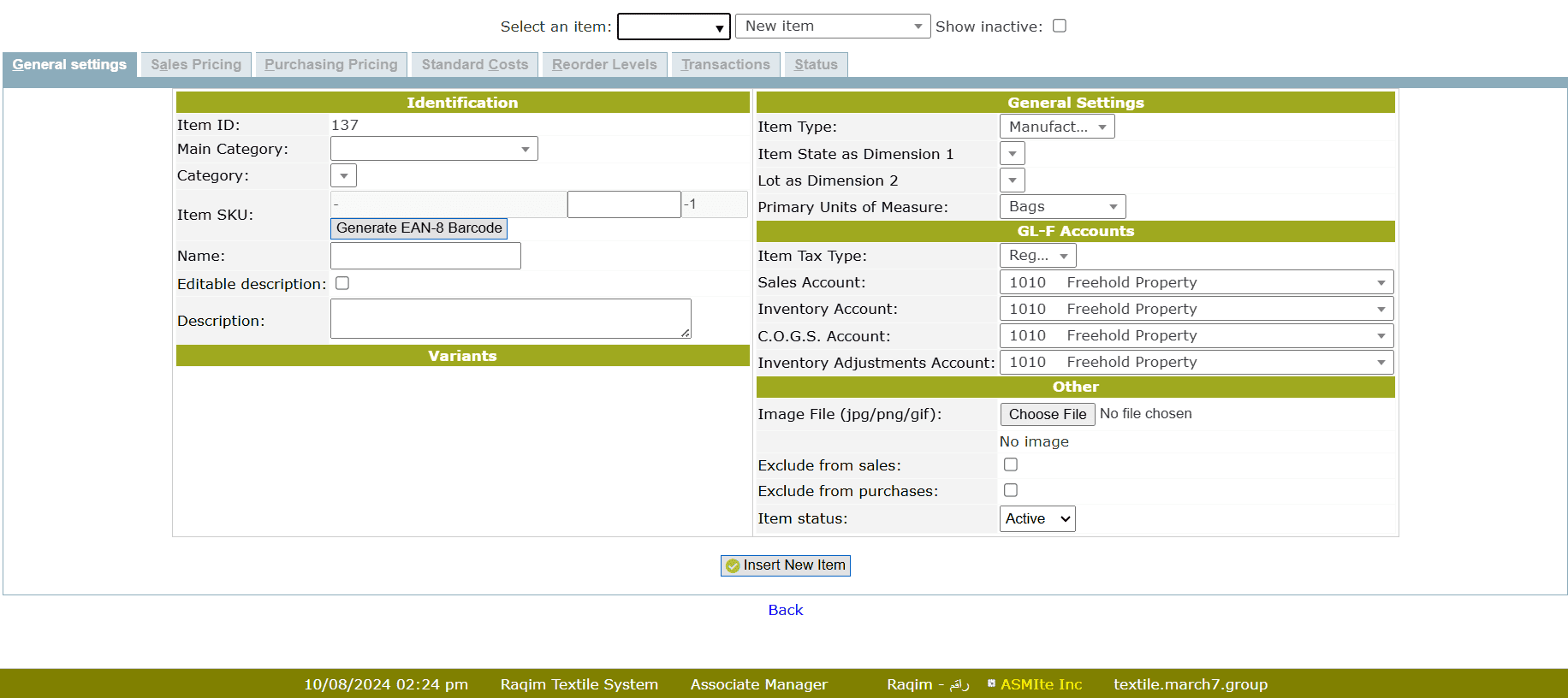 Item Status: It describes the active status of the item. select from the drop-down list, whether the item is active or not.