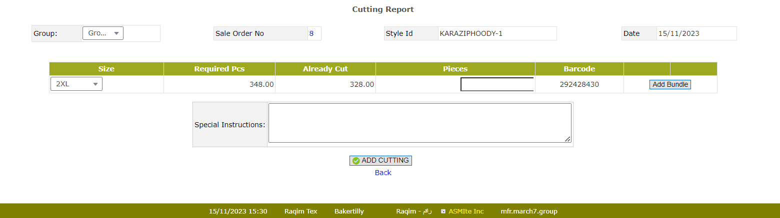 After Clicking the Cutting action, You wil see the cutting report, where you can manage the cutting process by the folowing steps