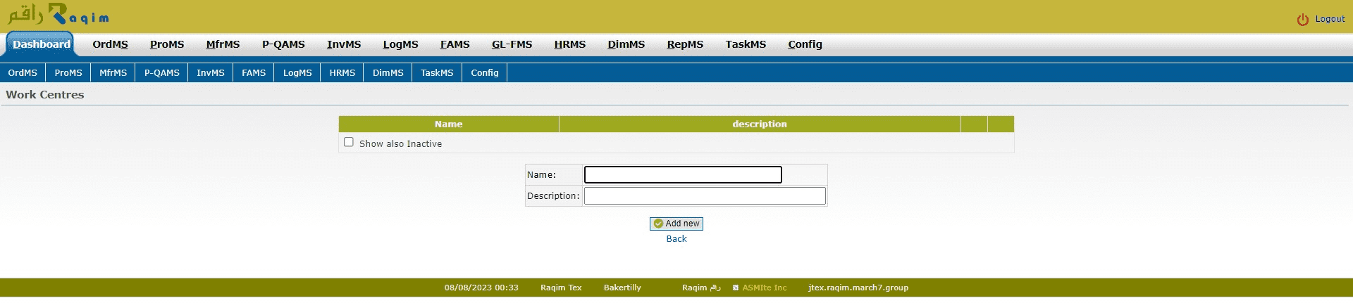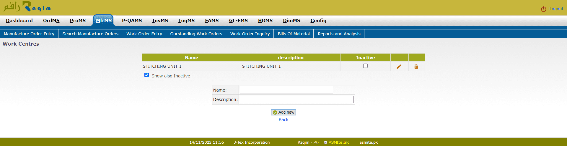 Check the Show Also Inactive Checkbox to show inactive work centres or to change the status of present work centres to inactive