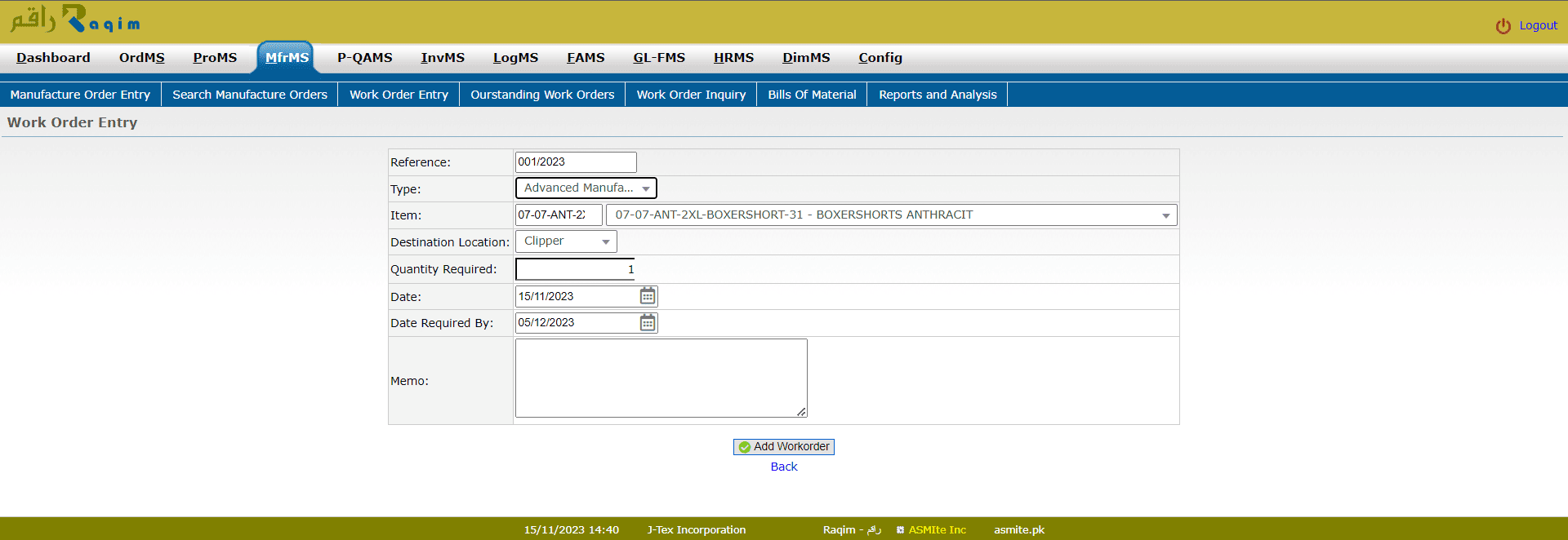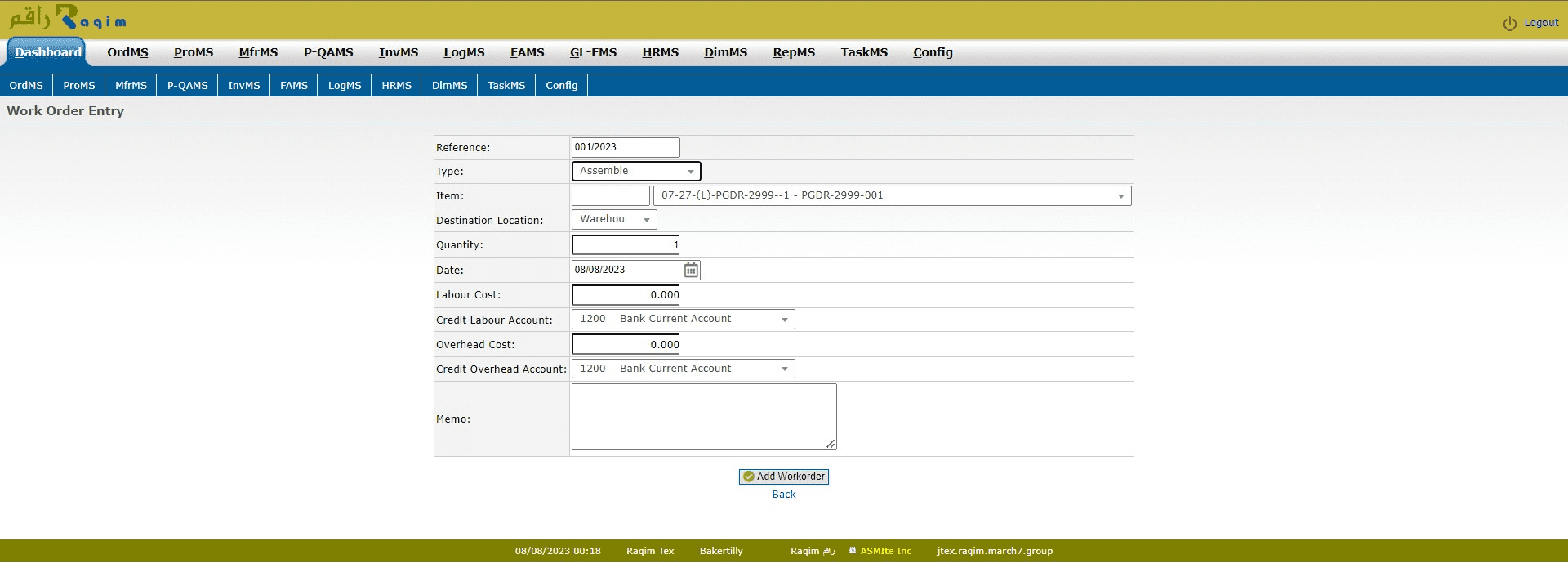 Create Work Order documents. Documents are posted to GL on closure. Advanced Manufacture is used when we wish to add items and costs to the BOM during the manufacturing duration.