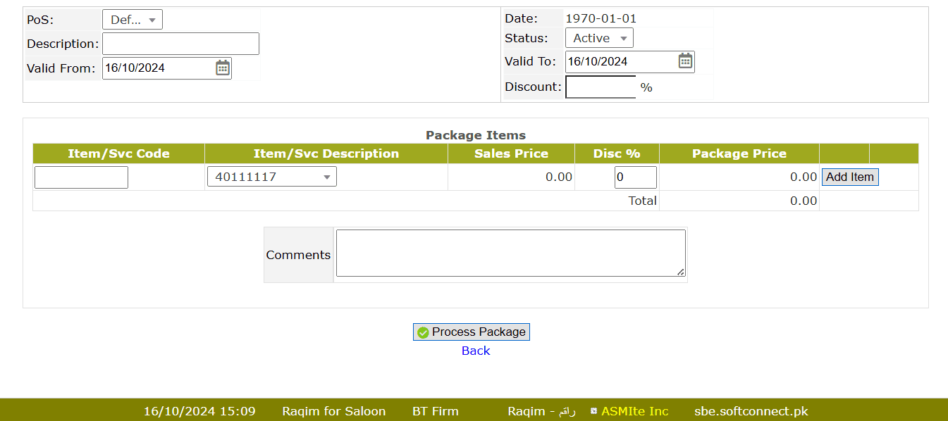 If you have placed a discount on the whole package and then you put a discount on a service in the package, the overall discount of the package will not apply on the service, but the service discount will apply.