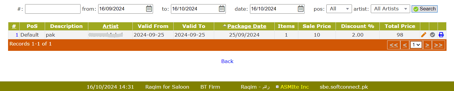 To Inquire, modify, approve and print Sales PackagesProcedure