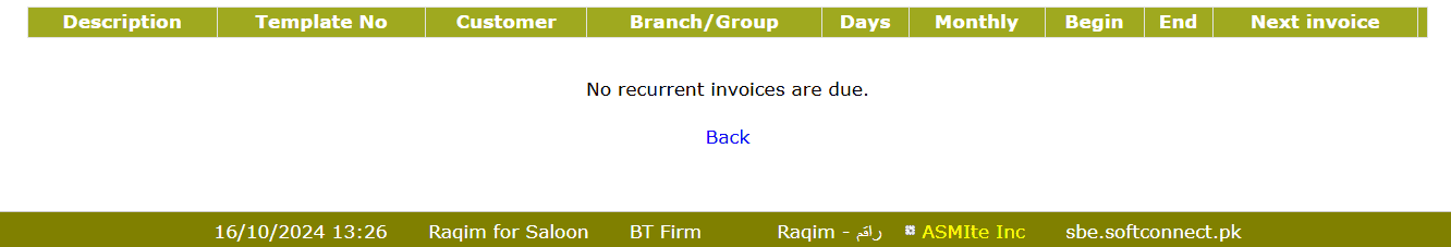 - An icon that allows generating invoices will appear only if current date is greater than Last Created + period.