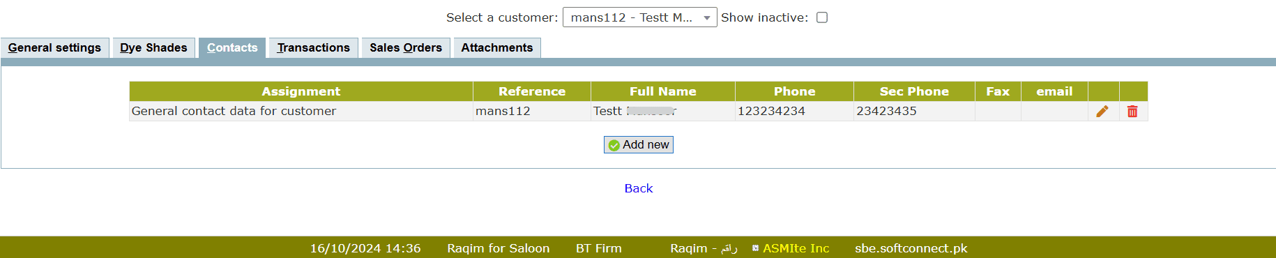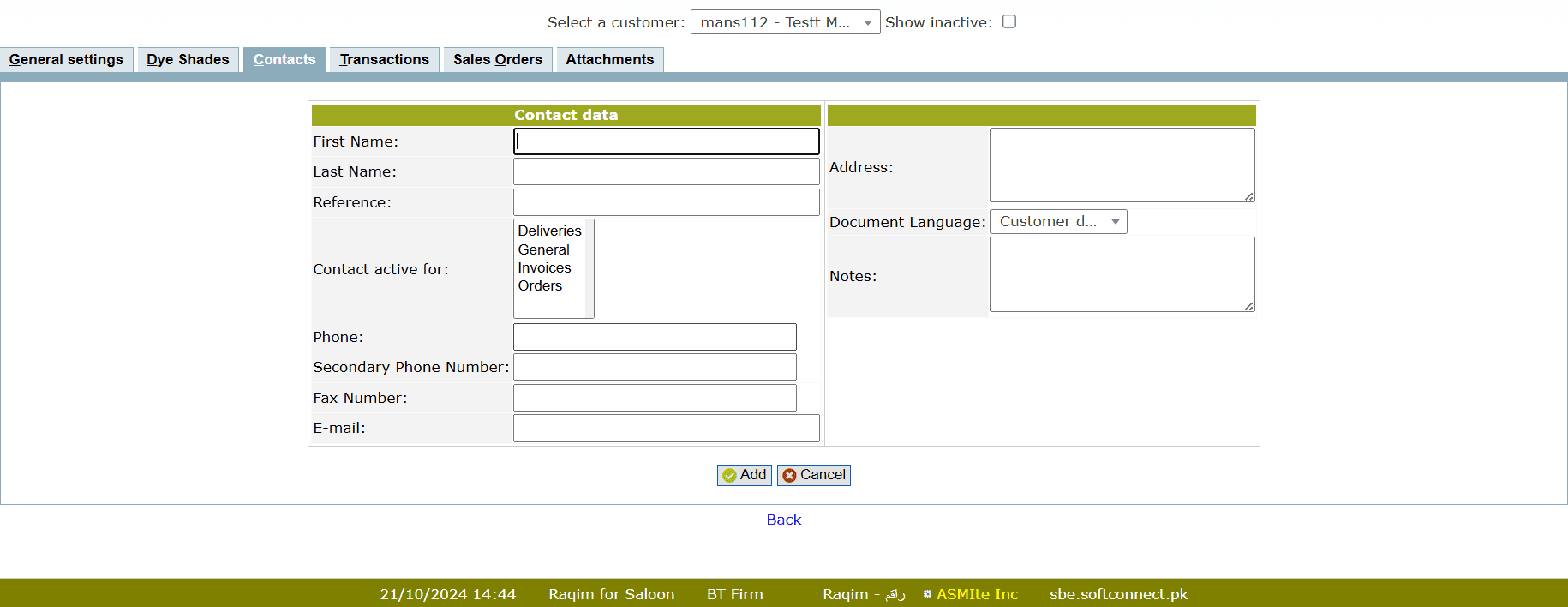 - Enter the required data and click Add button to add new contact