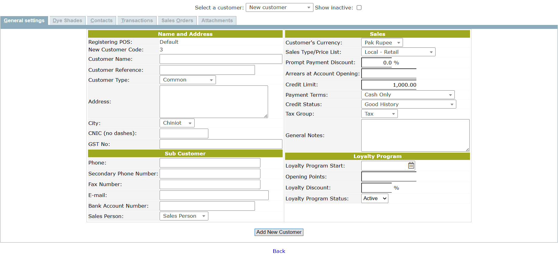 - Set the Loyalty Discount% of the customer