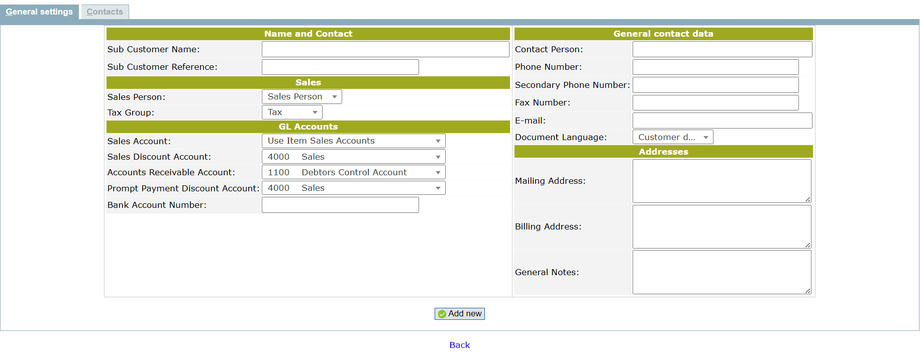 Set the GL Accounts and Bank Account Number of the Sub Customer