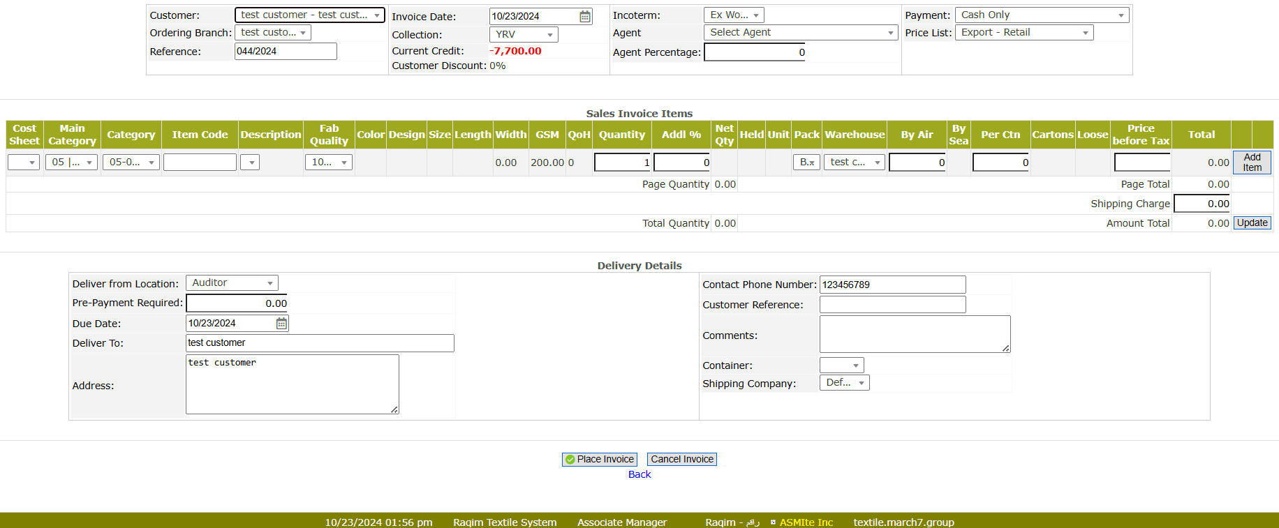 The steps and requirements for creating an invoice directly are covered under Sales Order Entry. By default, this operation will not allow an invoice to be created if the stock level of any item will become less than 0.