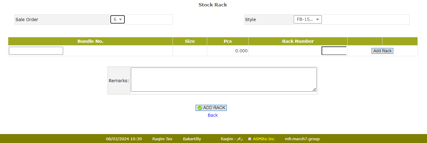 - Enter/Assign Rack Number to the Bundle