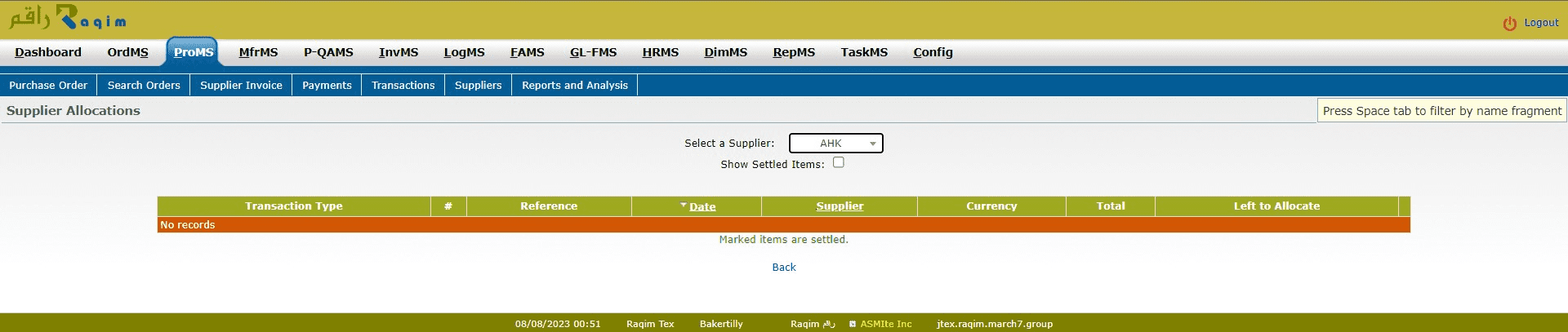 • Use icon on the right hand side to allocate Supplier payment against invoices