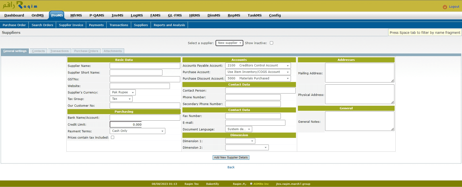 - Add New Supplier - fill in the form and click Add New Supplier on the bottom.